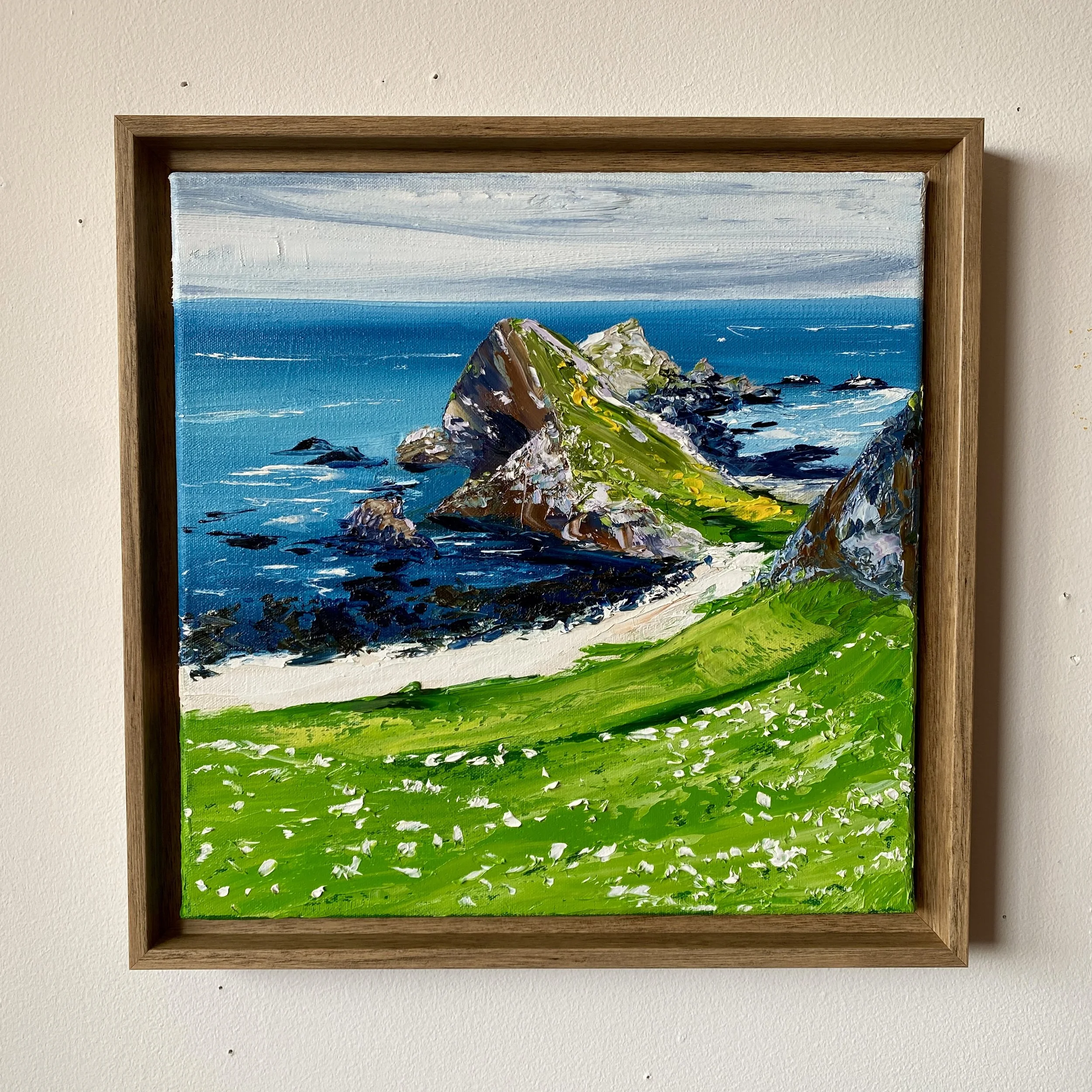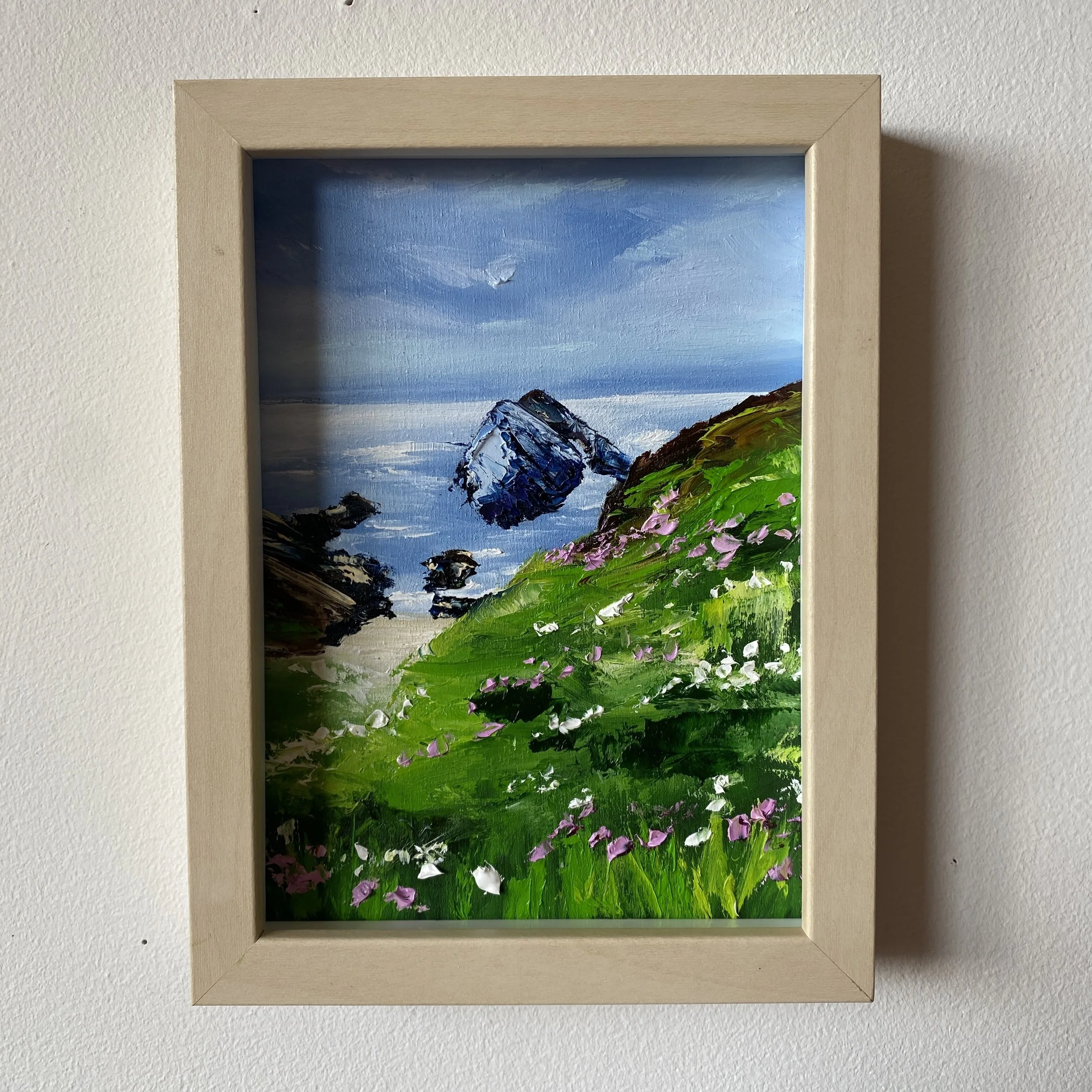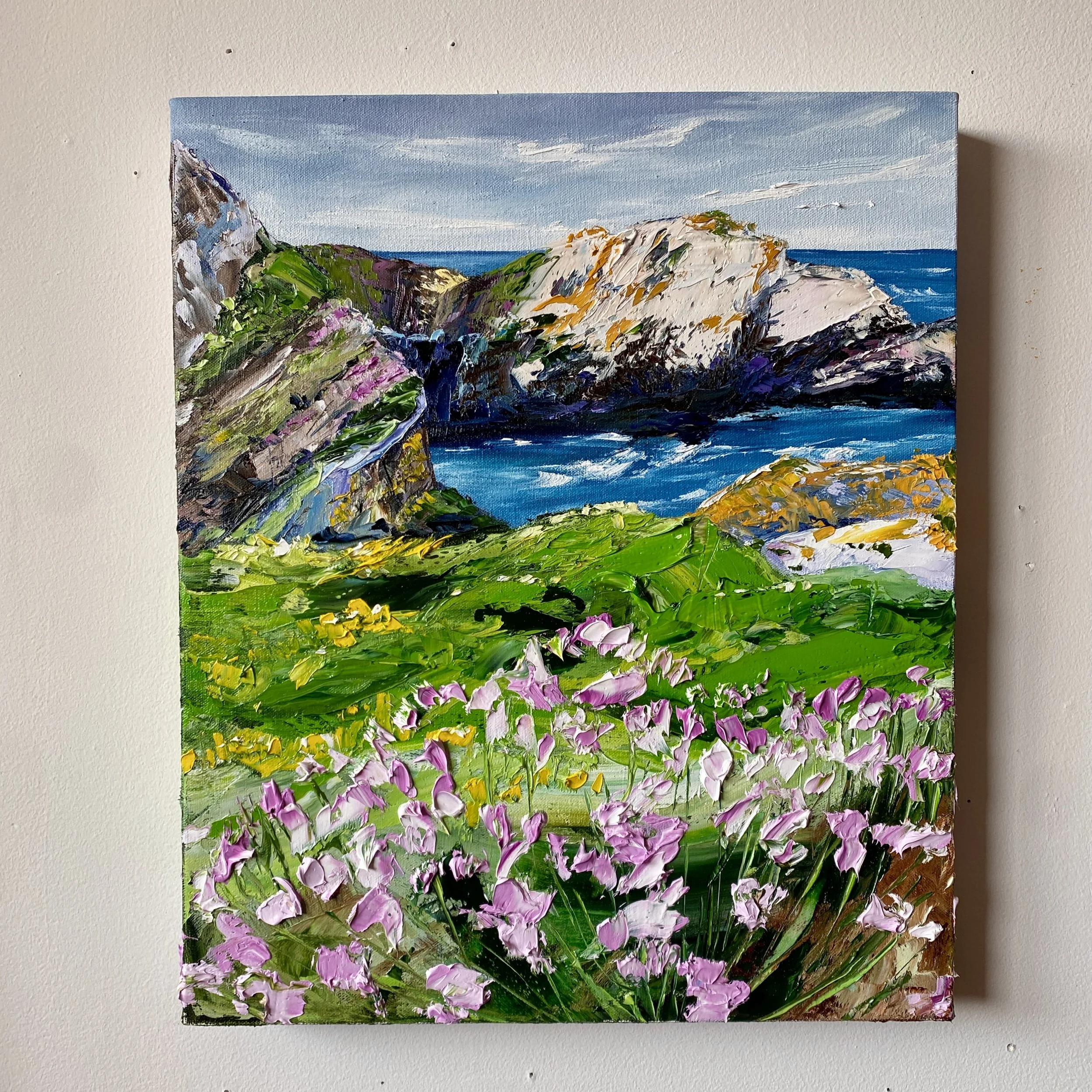 The last several weeks of April I have been painting studies for the Coasts and Castles part of my collection. From the coastal hills of Portknockie, to Bow Fiddle Rock, to the flowers of Slains Castle, this was all one AMAZING and inspirational day.